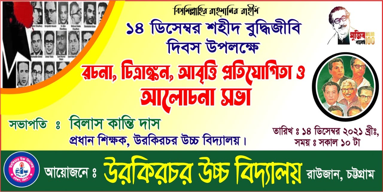 ১৪ ডিসেম্বর ২০২১,শহীদ বুদ্ধি জীবি দিবস এর অনুষ্ঠান সূচীঃ নিন্মোক্ত কার্যক্রমে ৬ষ্ঠ থেকে ১০ম শ্রেণির সকল ছাত্র ছাত্রী দের উপস্থিতি বাধ্যতামূলক। ১. চিত্রাঙ্কন প্রতিযোগিতা (৮ম) ২. রচনা প্রতিযোগিতা (৯ম) ৩.রচনা প্রতিযোগিতা (১০ম) ৪. কবিতা আবৃত্তি (সকল ছাত্র ছাত্রীদের জন্য উন্মুক্ত)। ৫. আলোচনা সভা ও মোনাজাত। উল্লেখ্য, প্রতিযোগী সহ সকল ছাত্র ছাত্রী সকাল ১০টার মধ্যে উপস্থিত থাকতে হবে। ---প্রধান শিক্ষক। See less